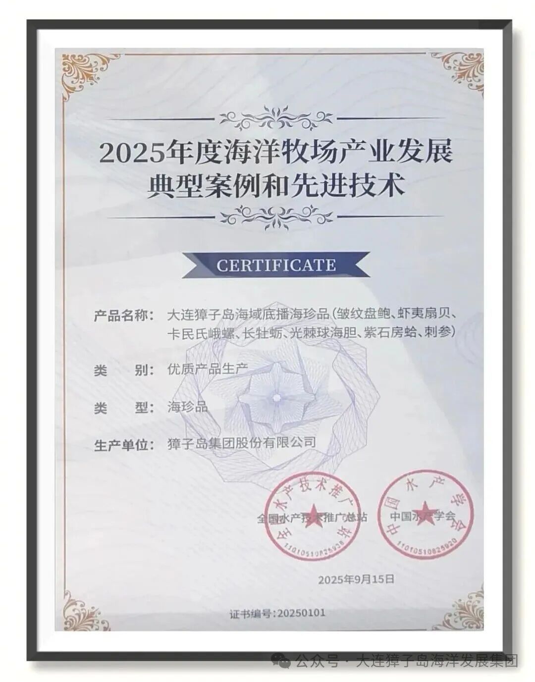 開幕式當(dāng)天,同期舉辦了海洋牧場產(chǎn)業(yè)發(fā)展典型案例和先進(jìn)技術(shù)推介發(fā)布會(huì)。獐子島集團(tuán)憑借其在海洋牧場領(lǐng)域的突出表現(xiàn)成功入選“2025 年度海洋牧場產(chǎn)業(yè)發(fā)展典型案例和先進(jìn)技術(shù)名單”。未來獐子島集團(tuán)會(huì)繼續(xù)發(fā)揮在海洋牧場建設(shè)上的引領(lǐng)作用,加大育苗養(yǎng)殖方面的創(chuàng)新投入,搭建產(chǎn)學(xué)研一體化創(chuàng)新平臺,加速科研成果轉(zhuǎn)化,為海洋經(jīng)濟(jì)高質(zhì)量發(fā)展提供堅(jiān)實(shí)的技術(shù)支撐與產(chǎn)業(yè)示范。